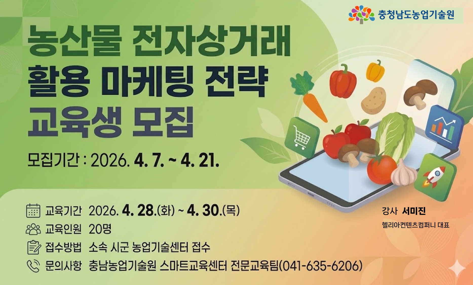 교육장소: 충청남도농업기술원 교육관 1층 전산교육장